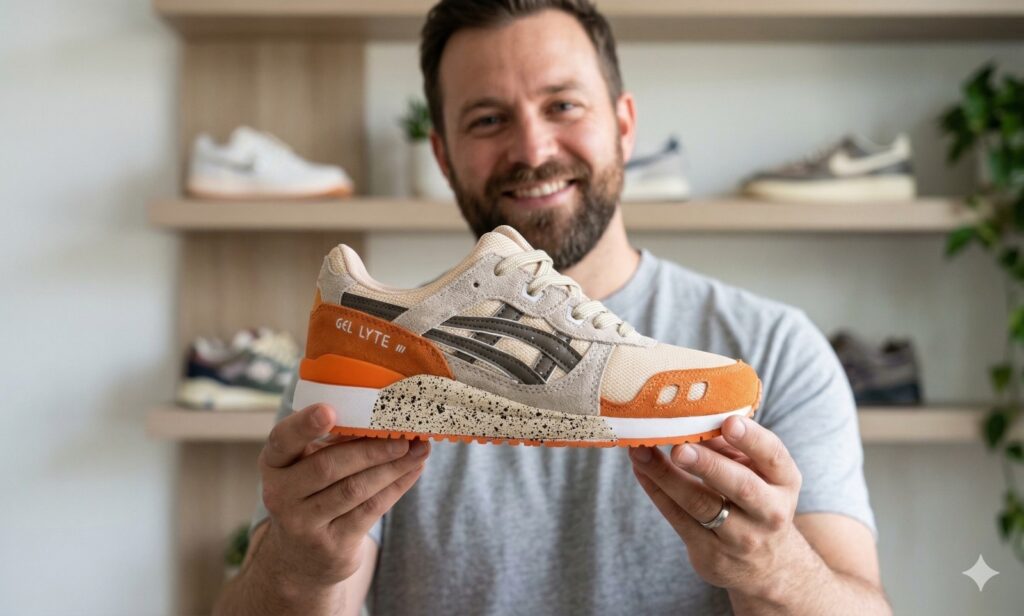 uma mega liquidação especial de um dos seus modelos mais procurados atualmente — o Tênis Masculino Asics Gel-Lyte III Premium (em couro).